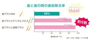 食べかすが歯に着いてから約24時間でプラークが形成されます。プラークは柔らかいので歯磨きやデンタルフロスなどによるセルフケアで取り除くことができますが100%清掃することが難しいのも現状です。