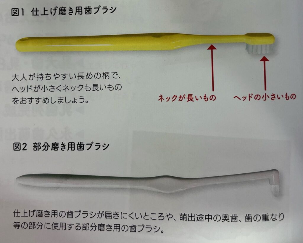 ①仕上げ磨き用歯ブラシ